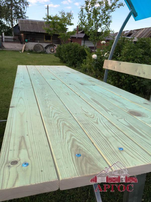 Настил стола и скамеек: Сухая, обрезная,строганная с закгругленными краями 20х140мм