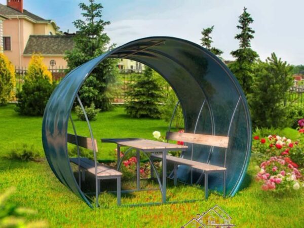 Каркас беседки изготовлен из оцинкованной сварной трубы и собирается с помощью болтов и гаек.