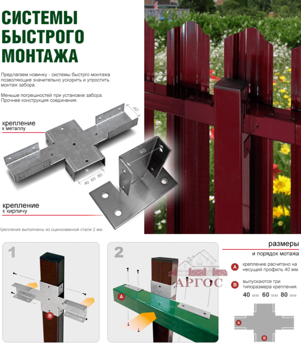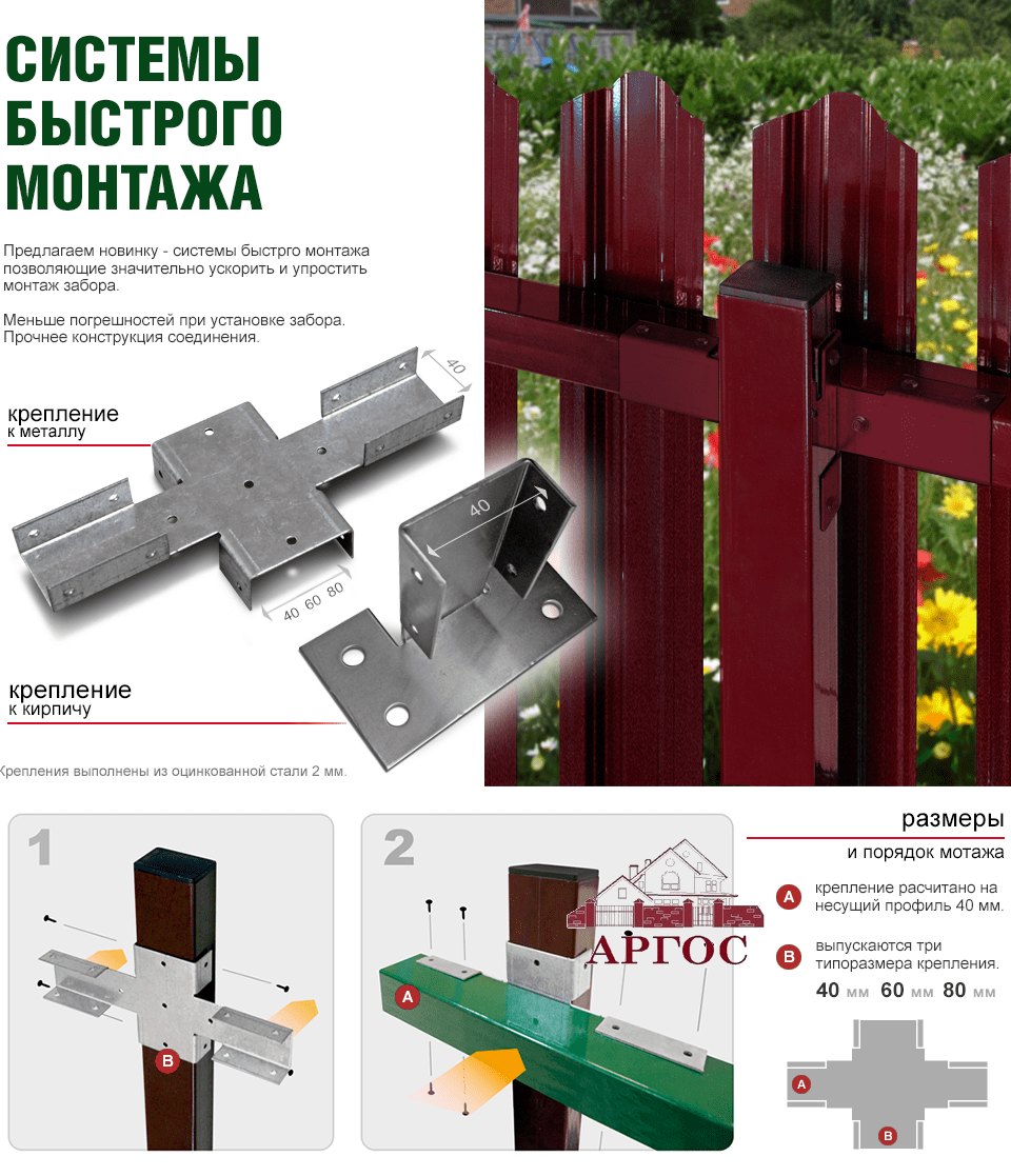 Комплектация для заборного каркаса, готового к самостоятельной сборке и монтажу, оцинкованный комплект пролёта ARG: