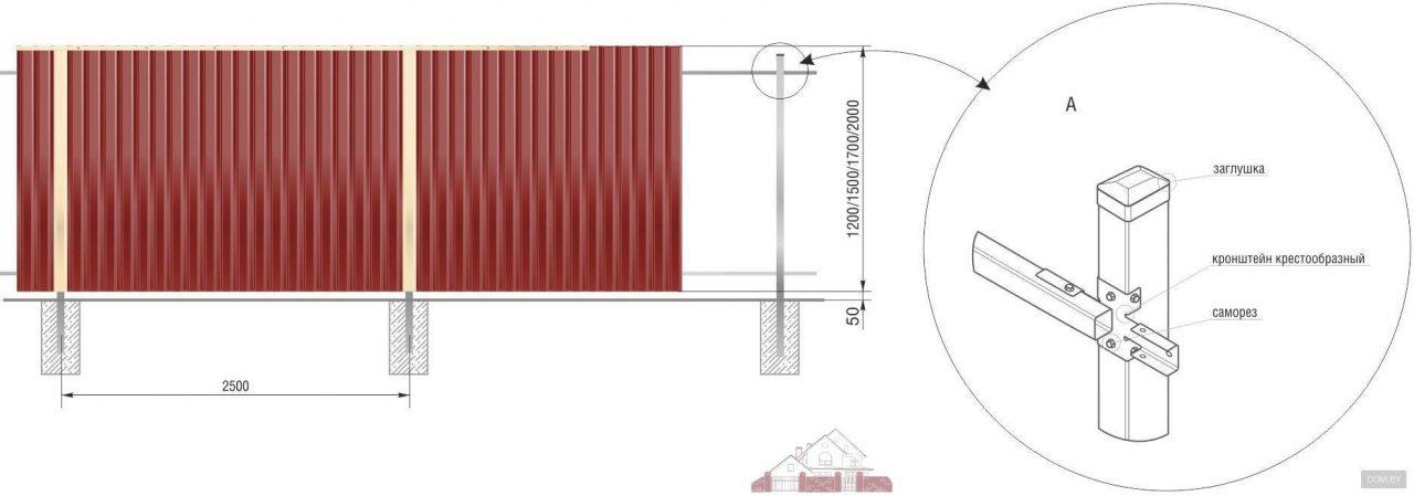 - 1 столб из оцинкованной стали 61*35*1,1мм высотой 2,8м