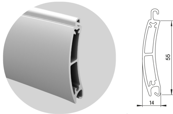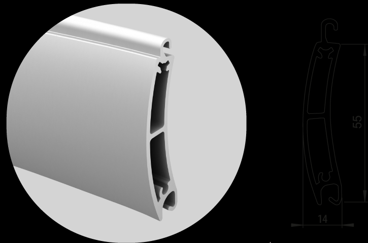 AER55/SCR— Профиль алюминиевый экструдированный, повышенной прочности. При применении специальной комплектации обеспечиваются высокие противовзломные характеристики.