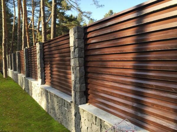 Еще одной приятной особенностью заборов данного типа является легкий и дешевый ремонт. Если забор по какой-то причине получит повреждение, то Вы без труда замените поврежденные ламели на новые без необходимости менять секцию целиком.
